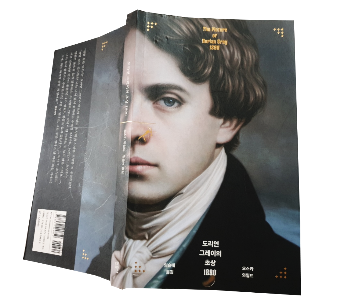 이 소설의 표지 그림은 정중원 화가가 이 책을 읽고 도리어 그레이라고 추정될 수 있는 인물을 그렸습니다. 실제로는 오스카 와일드의 연인이었던 알프레드 더글러스를 화폭에 담았다고 합니다. 표지를 둘러싼 그림을 평면 그림으로 만들어 보았습니다. 그와 시선을 마주치기만 해도 깊게 빨려 들 것 같은 눈, 매끈하면서 탄력 있는 볼, 금방이라도 내 마음을 송두리째 앗아갈 운명의 한마디를 내뱉을 것 같은 살짝 열린 입술을 봅니다.